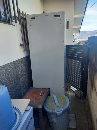 海田町 コロナ自然冷媒CO2家庭用ヒートポンプ給湯機 ヒートポンプユニットCHP-458K→ダイキン工業自然冷媒CO2家庭用ヒートポンプ給湯機貯湯ユニットTU37XFHV、ヒートポンプユニットRQW45XHV エコキュート交換工事